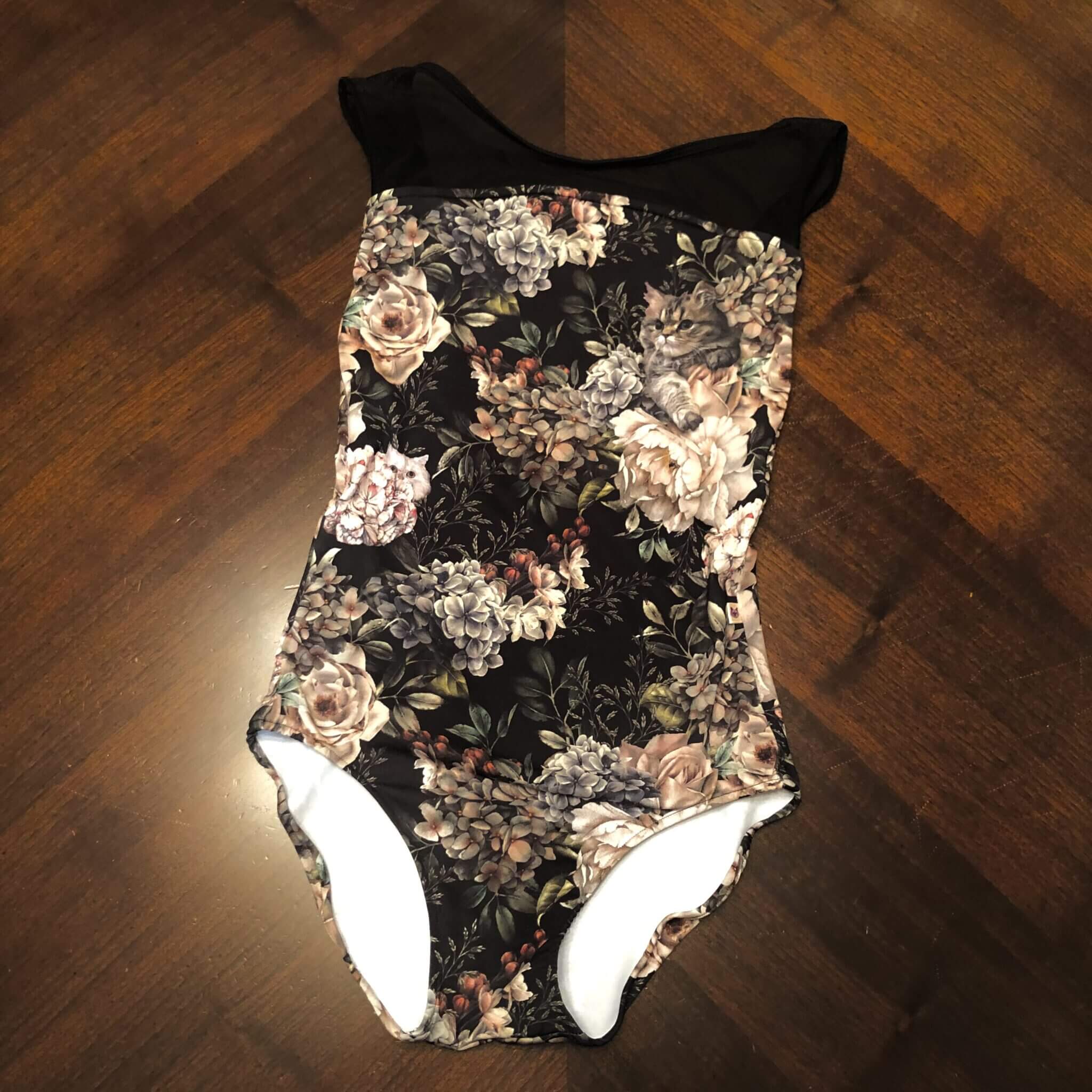 私の持っているレオタード、派手かも…って思って少し前に購入した、unoaさんの黒地のレオタード。笑