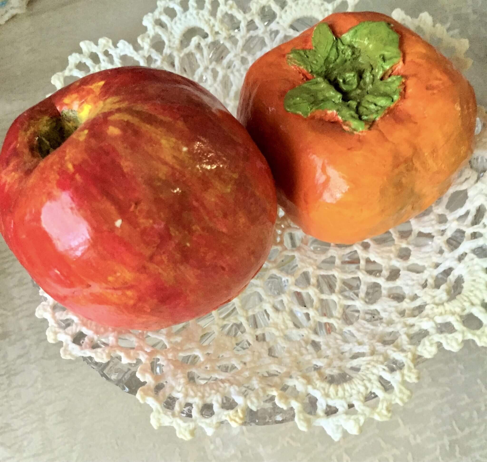 私が中学1年生の時に作った、石膏粘土のリンゴと柿が発掘されました。