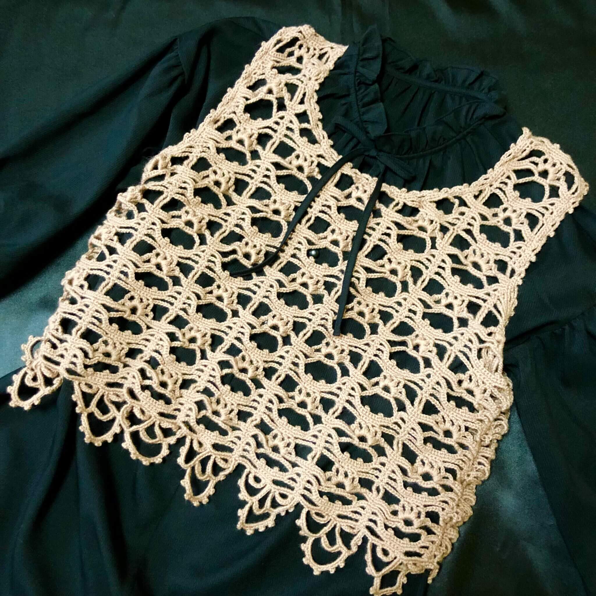先日制作したボレロカーディガンの余り糸で、リーフ模様のベストを制作しました。