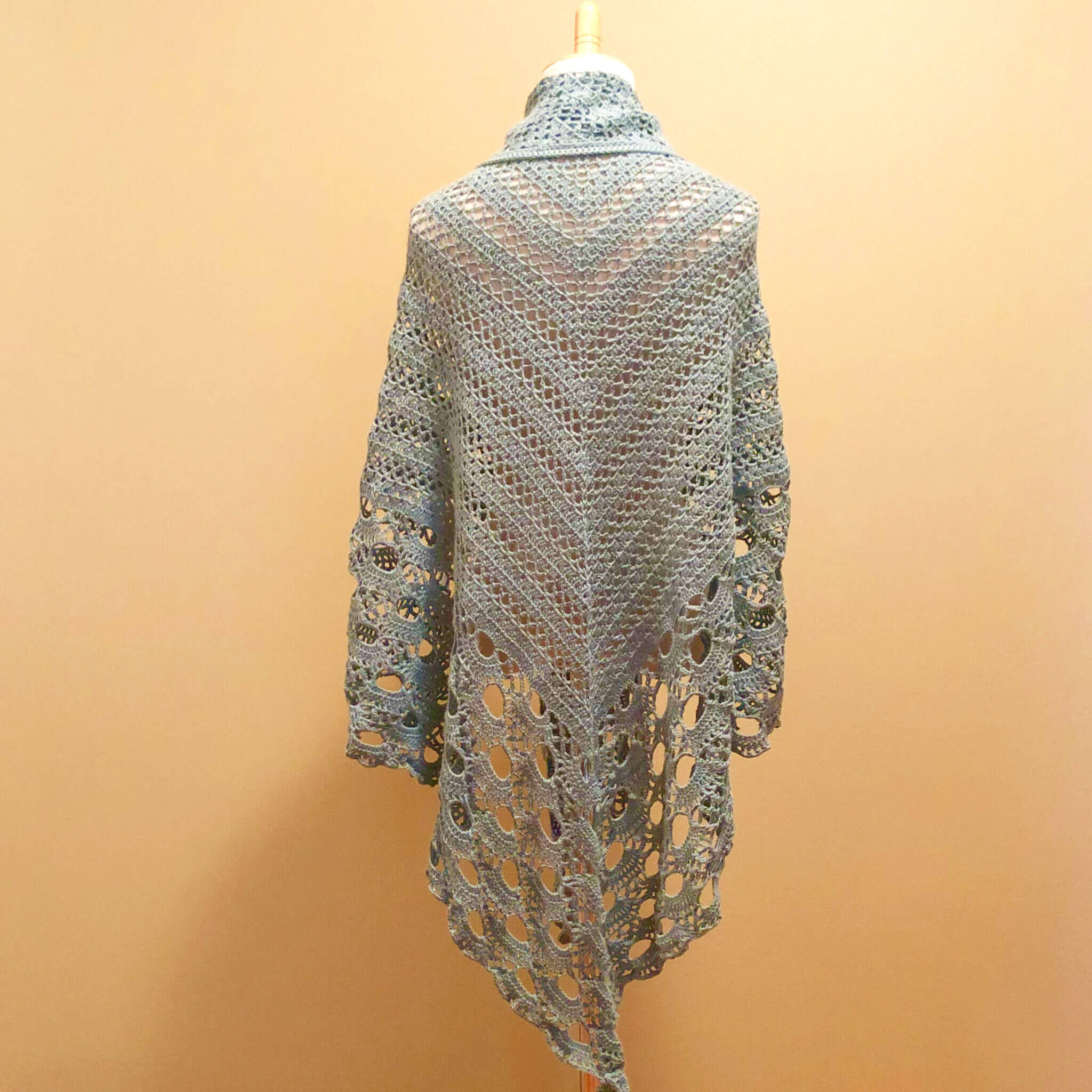 この大判三角ショールはベビーアルパカの毛糸で去年編みました。