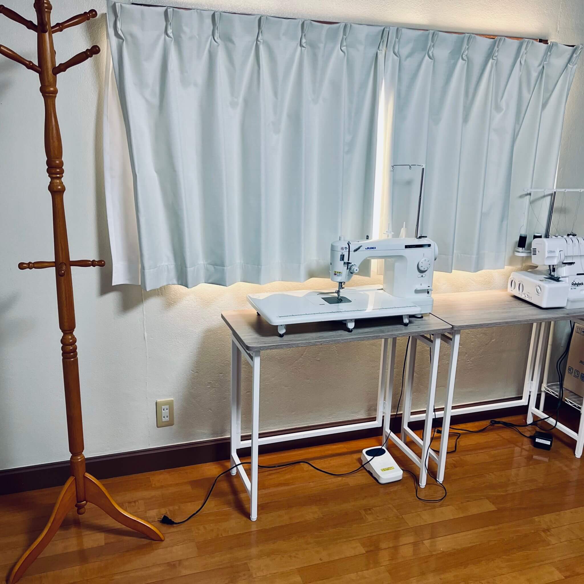 本当は2人暮らしには広いお部屋なのに、私の洋裁部屋は早くも物がぎっしり並んでます。