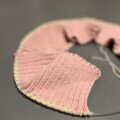 不意の変な格好の私。お気に入りの手編みのニットと、いつものカゴバッグ。
