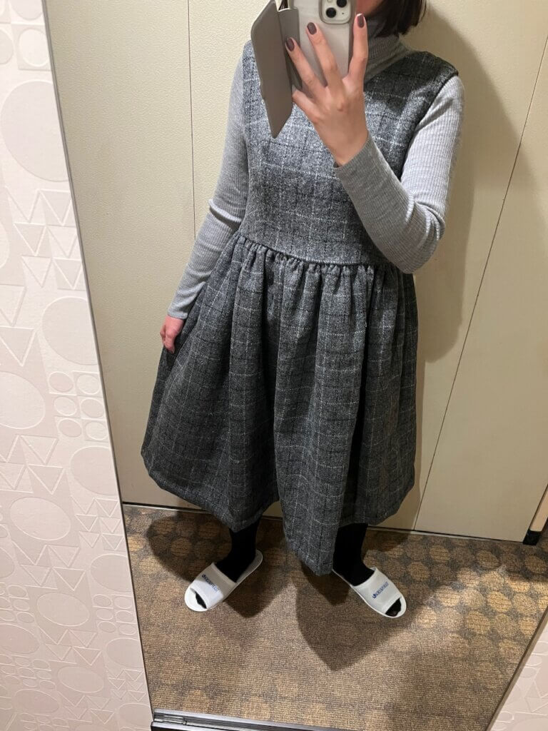 今年の冬に仕立てて、沢山着てとっても気に入っているのがハリスツイードで仕立てたこのドレス。